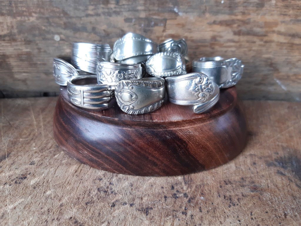 Spoon rings date back as far as the 1600’s in England. Made from spoons & cutlery that servants had stolen from their master’s homes. They were used as wedding rings by those who could not afford the ‘real thing’. Spoon rings still represent love & commitment. So the tradition goes on!